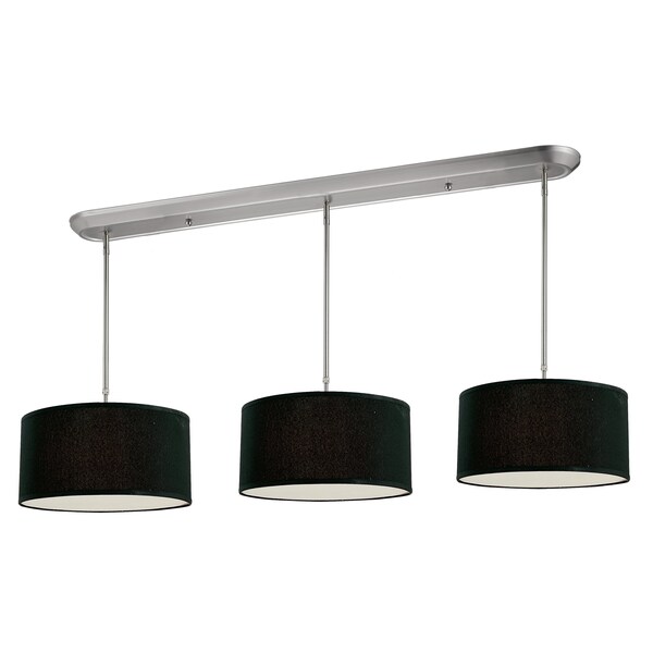 Elegant and contemporary best describe this beautiful nine light fixture. Finished in brushed nickel and paired with black shades, this nine light fixture would be equally at home in the game room, or anywhere else in the house needing a touch of timeless charm. Adjustable rods are included to ensure the perfect hanging height.