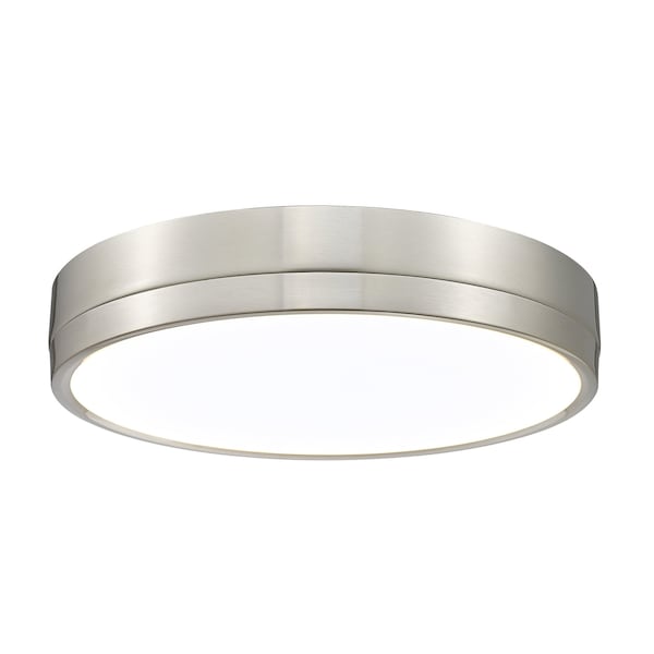 Classic with a touch of retro inspiration, the design of this one-light flush mount ceiling light is versatile for placement in kitchens, entryways, and living spaces. A sleek brushed nickel finish steel canopy nestles a frosted acrylic diffuser filtering dimmable LEDs that offer options for white color levels create a total package.
