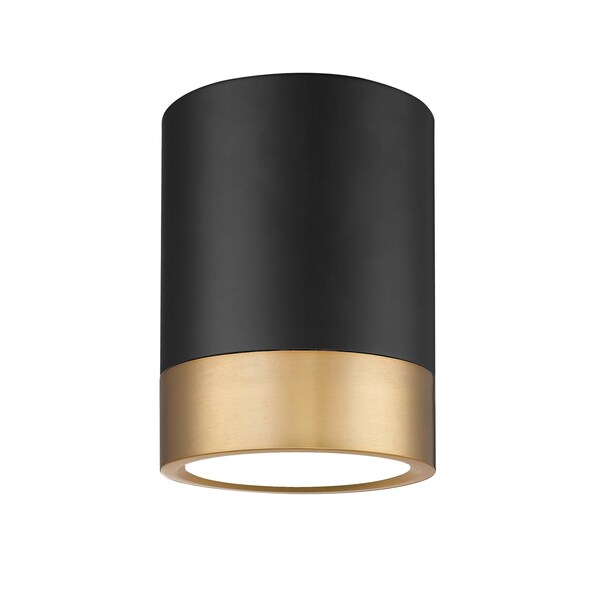 Tempting with a dual finish palette, this matte black and modern gold steel-constructed one-light flush mount ceiling light is a perfectly balanced fixture perfect for all settings. Dimmable illumination flows through a frosted diffuser, offering options that customize your choice of white color values.