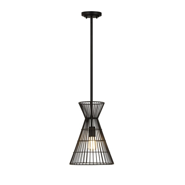 Indulge in a love of industrial aesthetics with a light fixture styled to deliver casual, easygoing personality in a targeted space. This mini-pendant from the Alito collection offers a bold matte black finish iron frame creating a geometric silhouette and a cage-style wire design. A matching down rod and canopy offer palette consistency and an energy-inducing look to punctuate any space.