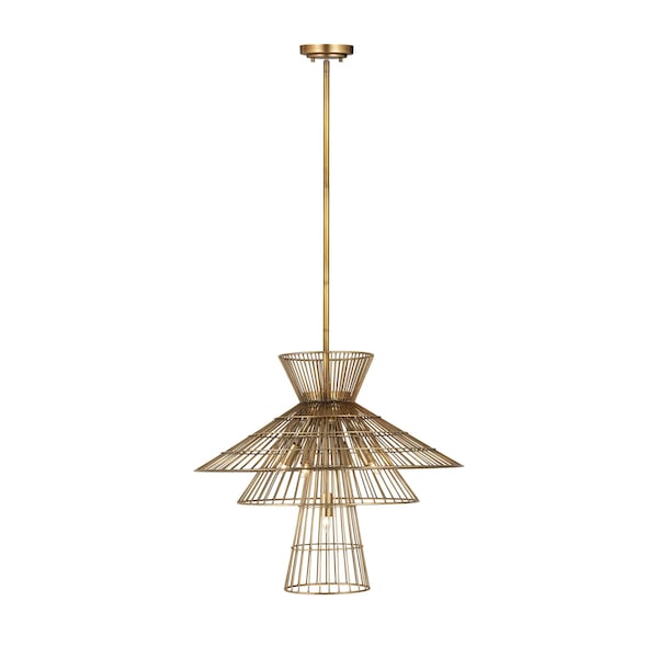 Offer up an energetic look while choosing lighting in a custom space, adding the Alito six-light pendant to steal the show. Warm rubbed brass finish iron crafts a tiered geometric arrangement of wired pieces and matching down rod and canopy. This striking fixture reflects a blend of industrial and modern styling.
