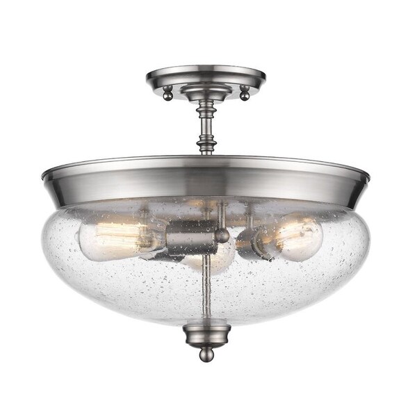 Amon 3 Light Semi Flush Mount, Brushed Nickel And Clear Seedy (Discontinued)