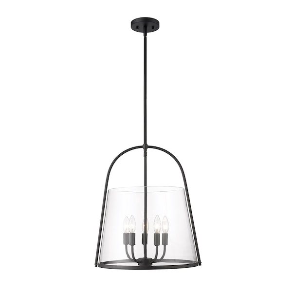 Archis Pendant, 5-Light, 18 In.W x 21 In.H, Matte Black/Clear