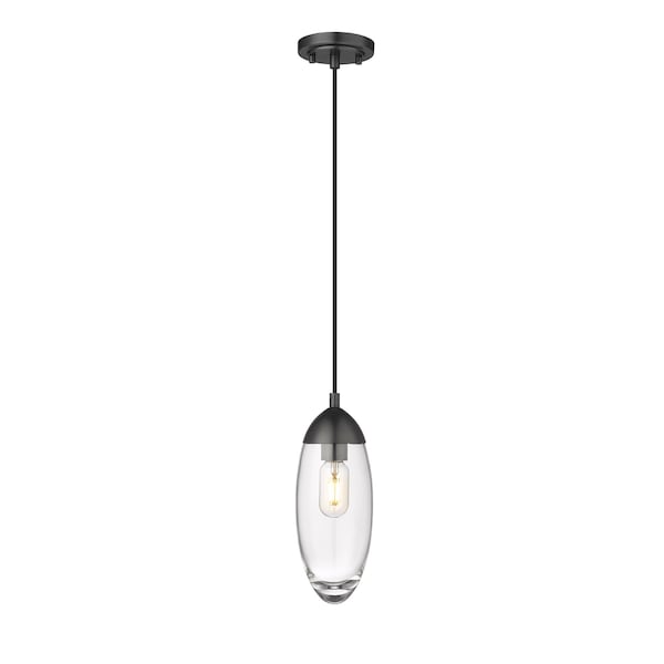 Arden Pendant, 1-Light, 4.5 In.W x 12 In.H, Matte Black/Clear