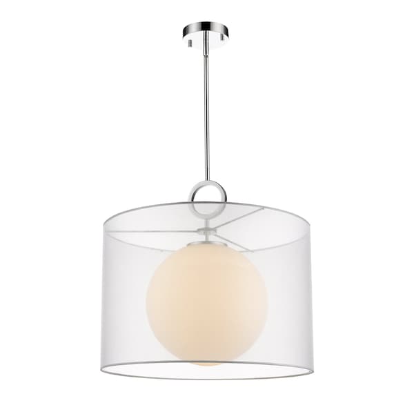 A bold, white fabric shade lends a touch of modern flair to this eye-catching, single-light pendant. From bedrooms to dining rooms to living rooms and more, this gorgeous, chrome fixture will elevate your living space to new heights of style.