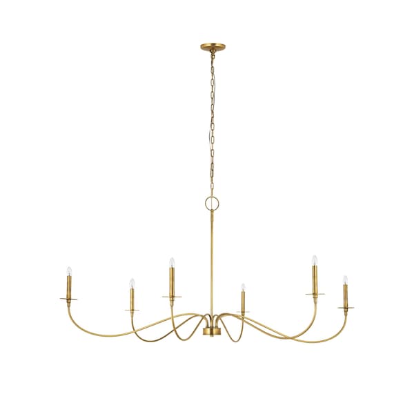 Extreme elegance serves both modern and traditional design schemes with a romantic look when this six-light chandelier delivers graceful charm in a living room, entryway, or dining room. Crafted of warm rubbed brass finish steel, its long, flared arms create a careful arrangement for placement of candelabra-style bulbs that borrow from a traditional motif. This chandelier is ideal for larger living spaces.