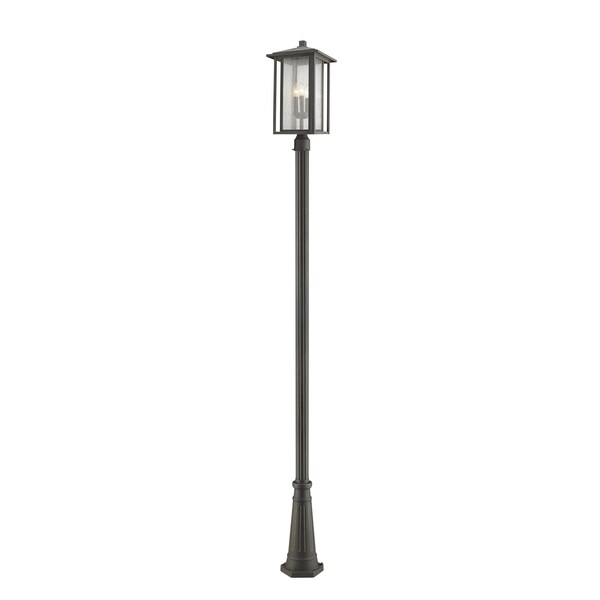 Aspen 3 Light Outdoor Post Mounted Fixture, Oil Rubbed Bronze And Clear Seedy