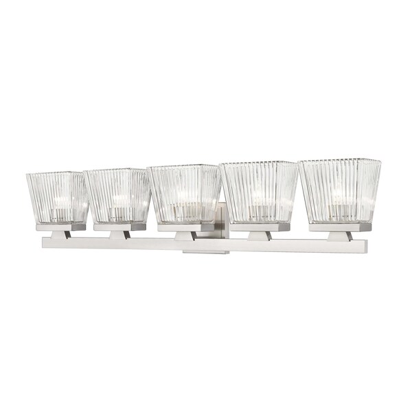 Astor 5 Light Vanity, Brushed Nickel & Clear