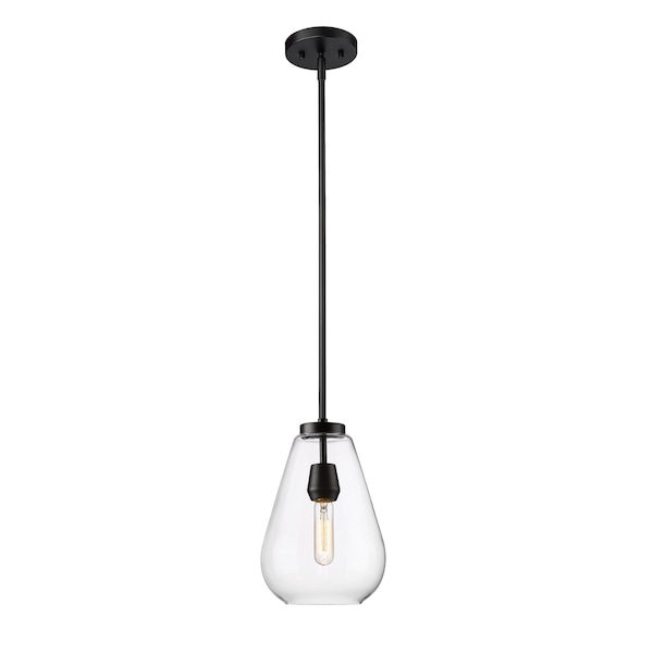 Ayra Pendant, 1-Light, 8 In.W x 11.75 In.H, Matte Black/Clear