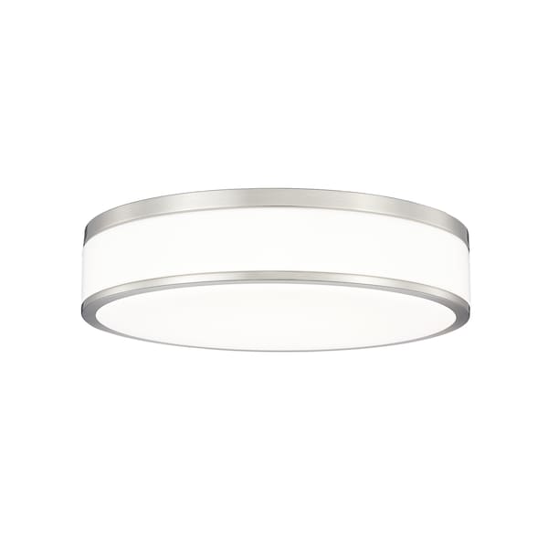 Fashion forward brushed nickel sets the tone for a refined modern one-light flush mount ceiling light. Bands of brushed nickel finish steel create a sleek frame, while frosted acrylic diffusers ensure soft, inviting lighting for your bedroom, den, or living room seating group. This LED fixture is an energy efficient choice for your home.