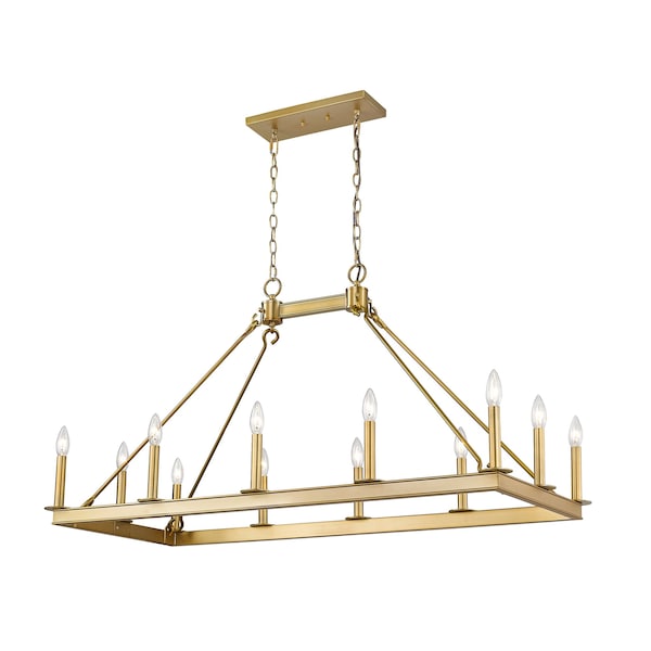 This majestic twelve-light island/billiard light makes an elegant addition to your home lighting collection. It's crafted in a gorgeous olde brass finish and features the candle-inspired lights in a vibrant rectangular design. It's the ideal light for the dining room, foyer, kitchen, or entertainment room.