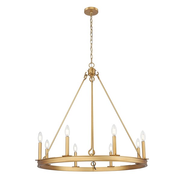 Barclay 8 Light Chandelier, Rubbed Brass, 33 In W x 32 In H