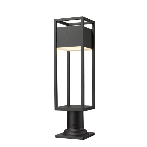 Secure this modern outdoor pier mounted fixture to walkway columns and deck corners for a warm, soothing glow around your veranda or exterior entertainment space. From the Barwick collection, this outdoor light fixture features an open and airy, rectangular aluminum frame in a deep black finish, lending itself nicely to your home's existing facade's color palettes. This pier mounted lantern also offers an updated, sophisticated design with its etched glass plate, which covers an energy-efficient LED-integrated lamp.