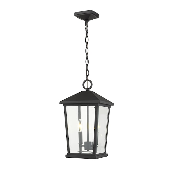 Beacon 2 Light Outdoor Chain Mount Ceiling Fixture, Black & Clear Beveled