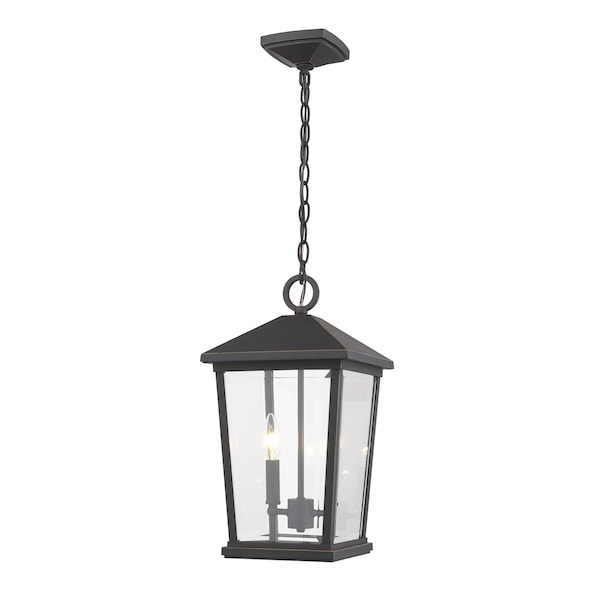 Beacon 2 Light Outdoor Chain Mount Ceiling Fixture, Oil Rubbed Bronze & Clear Beveled