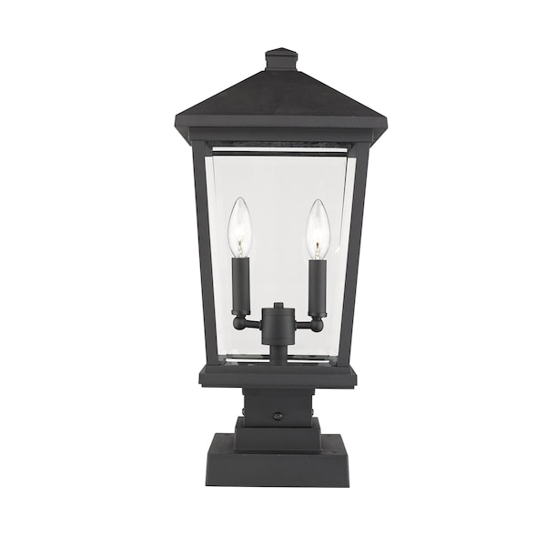 Beacon 2 Light Outdoor Pier Mounted Fixture, Black & Clear Beveled