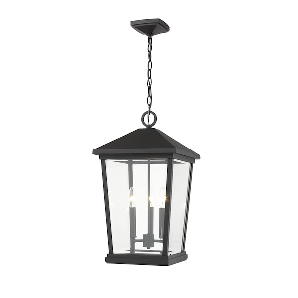 Beacon 3 Light Outdoor Chain Mount Ceiling Fixture, Black & Clear Beveled