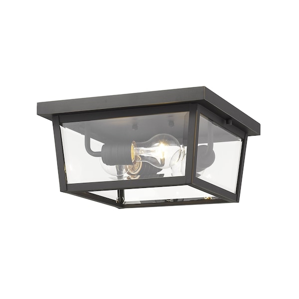 Beacon 3 Light Outdoor Flush Ceiling Mount Fixture, Oil Rubbed Bronze & Clear Beveled