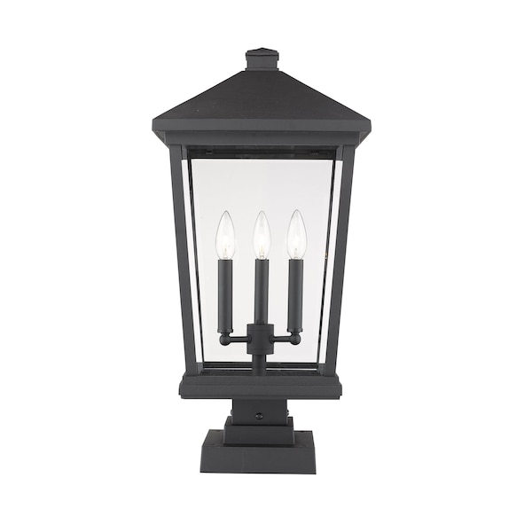 Beacon 3 Light Outdoor Pier Mounted Fixture, Black & Clear Beveled