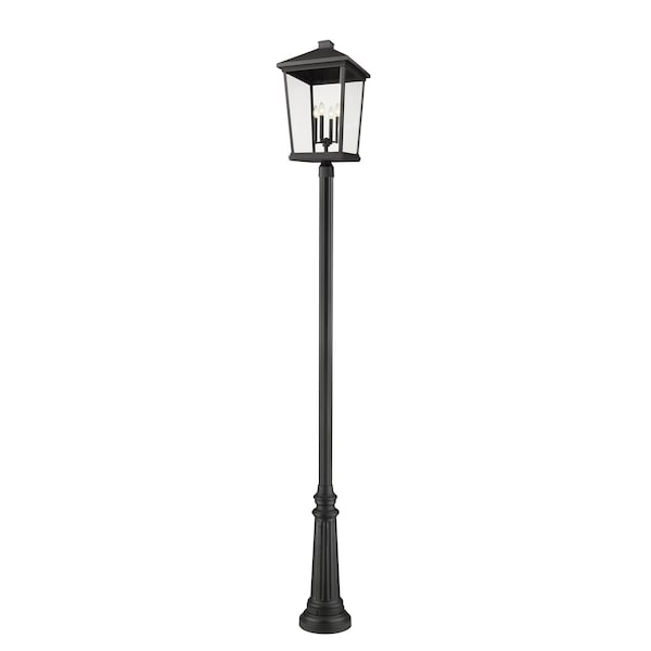 Beacon 4 Light Outdoor Post Mounted Fixture, Black & Clear Beveled