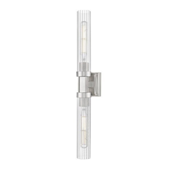 Beau 2 Light Wall Sconce, Brushed Nickel/Clear Ribbed, 4.5 In W