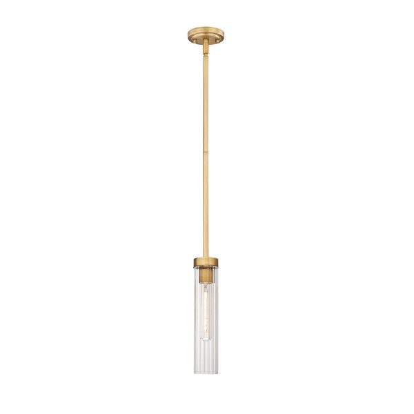 Beau Pendant, 1-Light, 4.75 In.W x 12.75 In.H, Rubbed Brass/Clear