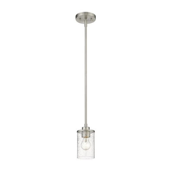 Beckett 1 Light Mini Pendant, Brushed Nickel And Clear Seedy