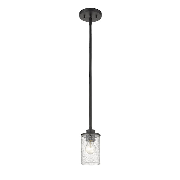 Beckett 1 Light Mini Pendant, Matte Black And Clear Seedy
