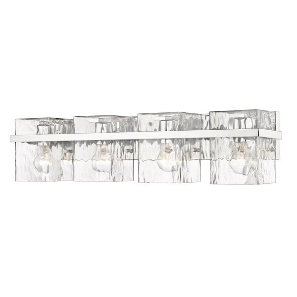 This four-light vanity light with clear glass shades brings a sophisticated expression for your bathroom lighting. Rippled shades provide an eye-catching texture while the steel construction is finished in chrome.