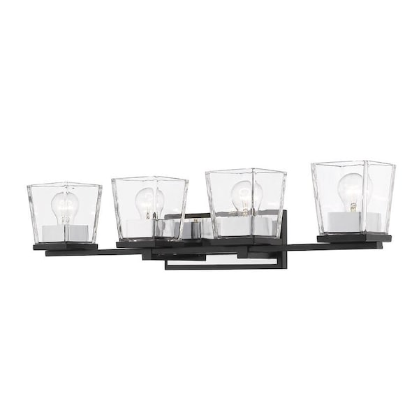 Bleeker Street 4 Light Vanity, Matte Black & Clear