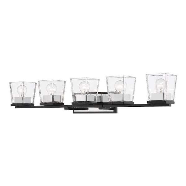 Bleeker Street 5 Light Vanity, Matte Black & Clear