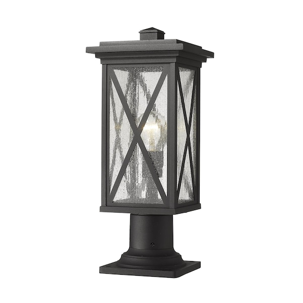 Brookside 1 Light Outdoor Pier Mounted Fixture, Black And Clear Seedy