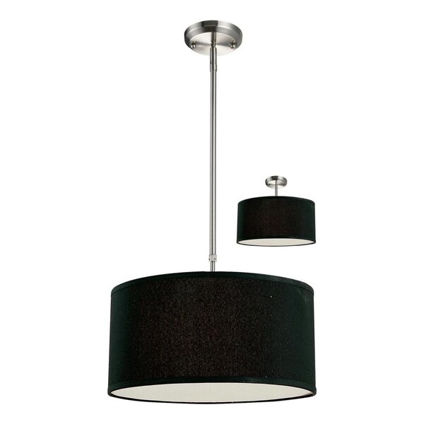 Add a touch of modern to any part of your house with this contemporary pendant. Finished in brushed nickel hardware, the circular, textured linen shade is in black, and includes a matching diffuser to soften the light. The fixture also includes telescoping rods to ensure the perfect height and comes complete to install as a pendant or a semi flush.