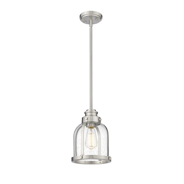 Indulge in a love of historical themed decor with this elegant one-light mini-pendant. A steel frame with brushed nickel finishes offers a fitting host to a stylish domed shade crafted from romantic clear seedy glass.