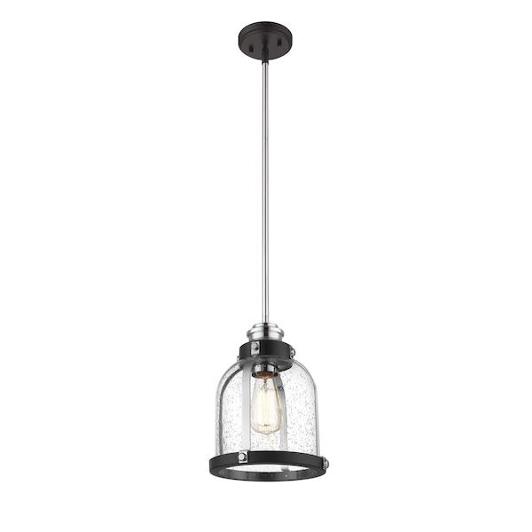 Indulge in a love of historical themed decor with this elegant one-light mini-pendant. A steel frame with two-tone matte black and chrome finishes offers a fitting host to a stylish domed shade crafted from romantic clear seedy glass.