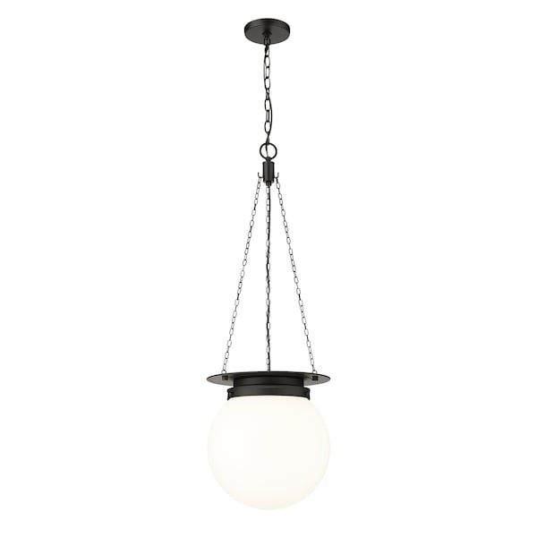 Calhoun Pendant, 1-Light, 13 In.W x 14.75 In.H, Matte black/white opal