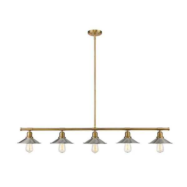 Casa 5 Light Island/Billiard, Factory Brass & Brushed Nickel