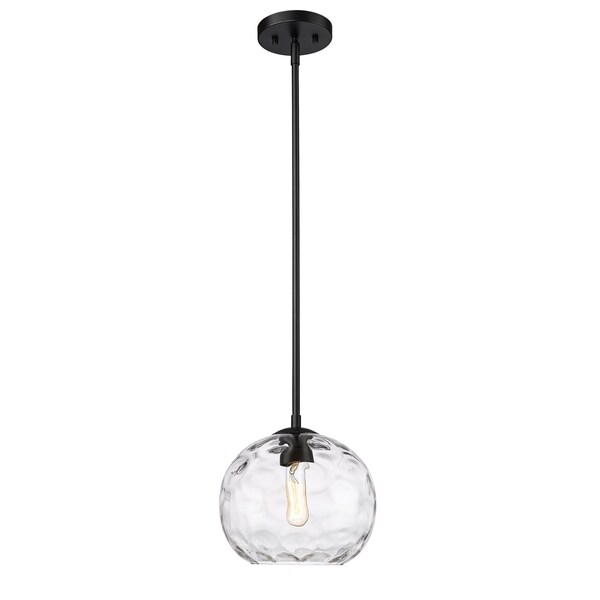Define your modern space with the eye-catching, streamlined presence of this one-light pendant. Rounded shades are made from clear, water-textured glass, suspended from a sleek steel frame with a matte black finish. Your contemporary dining room or family space gets an instant boost with this sophisticated fixture.