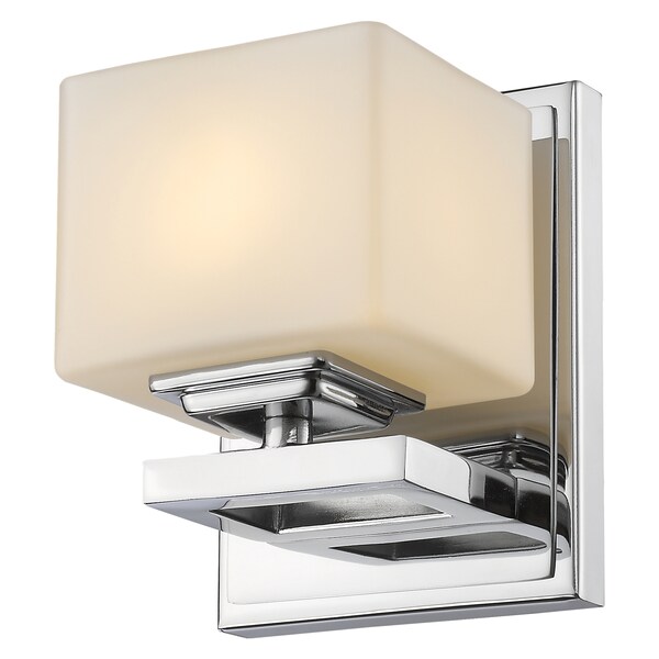 The Cuvier Family Of Vanity Lights Feature Square Cube Glass Shades Sit Atop An Open Squared Perch. The Brushed Nickel, Chrome Or Bronze Fixtures Are Paired With Matte Opal Glass To Create A Contemporary Style.