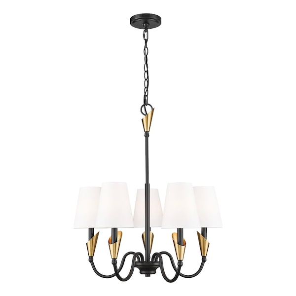 Claudelle 5-Light Chandelier, 24 in W, Matte Black + Modern Gold