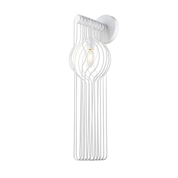 Doubling down on ultra-modern style, this single-light wall sconce becomes a focal point in a contemporary bathroom, bedroom, or hallway. Careful detailing yields a linear design of long white finish steel rods and a glossy white finish frame. A charming candelabra bulb mount delivers a softening effect with pure style.