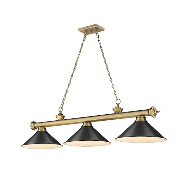 Cordon 3 Light Billiard, Rubbed Brass & Matte Black