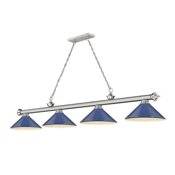 Cordon 4 Light Billiard, Brushed Nickel & Navy Blue