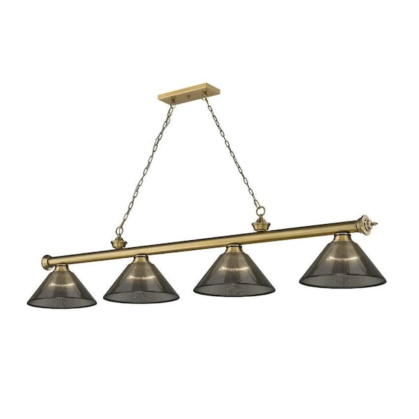 Cordon 4 Light Billiard, Rubbed Brass & Smoke