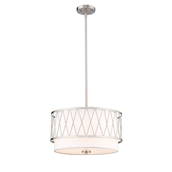 Dalton 3 Light Pendant, Brushed Nickel & White