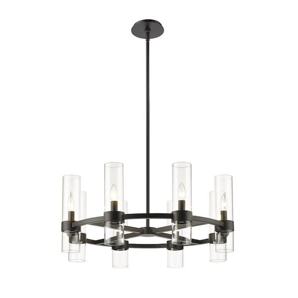 Datus 8 Light Chandelier, Matte Black & Clear