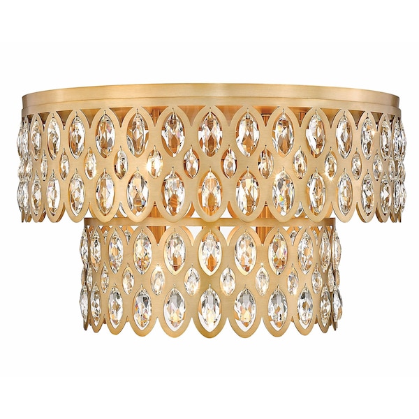 Wide double tiers showcase the sparkling crystal baubles that define this Dealey collection nine-light flush mount ceiling light. An heirloom brass finish is both warm and welcoming, delivering richness and elegance in a piece that mimics a classic chandelier while demanding much less ceiling clearance. Glittering crystal ensures a look that's both glam and elegant, offering eye-catching ambiance in your elevated living space.