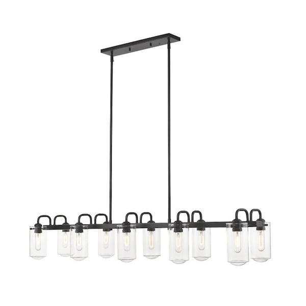 Delaney 10 Light Island/Billiard, Matte Black & Clear