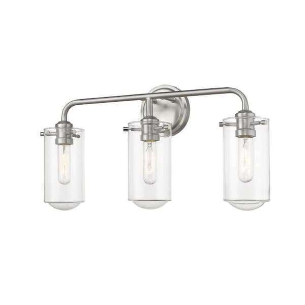 Delaney 3 Light Vanity, Brushed Nickel & Clear