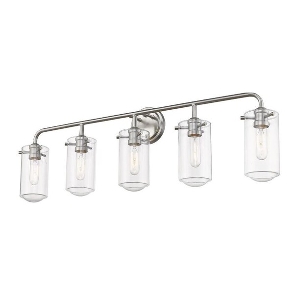 Delaney 5 Light Vanity, Brushed Nickel & Clear